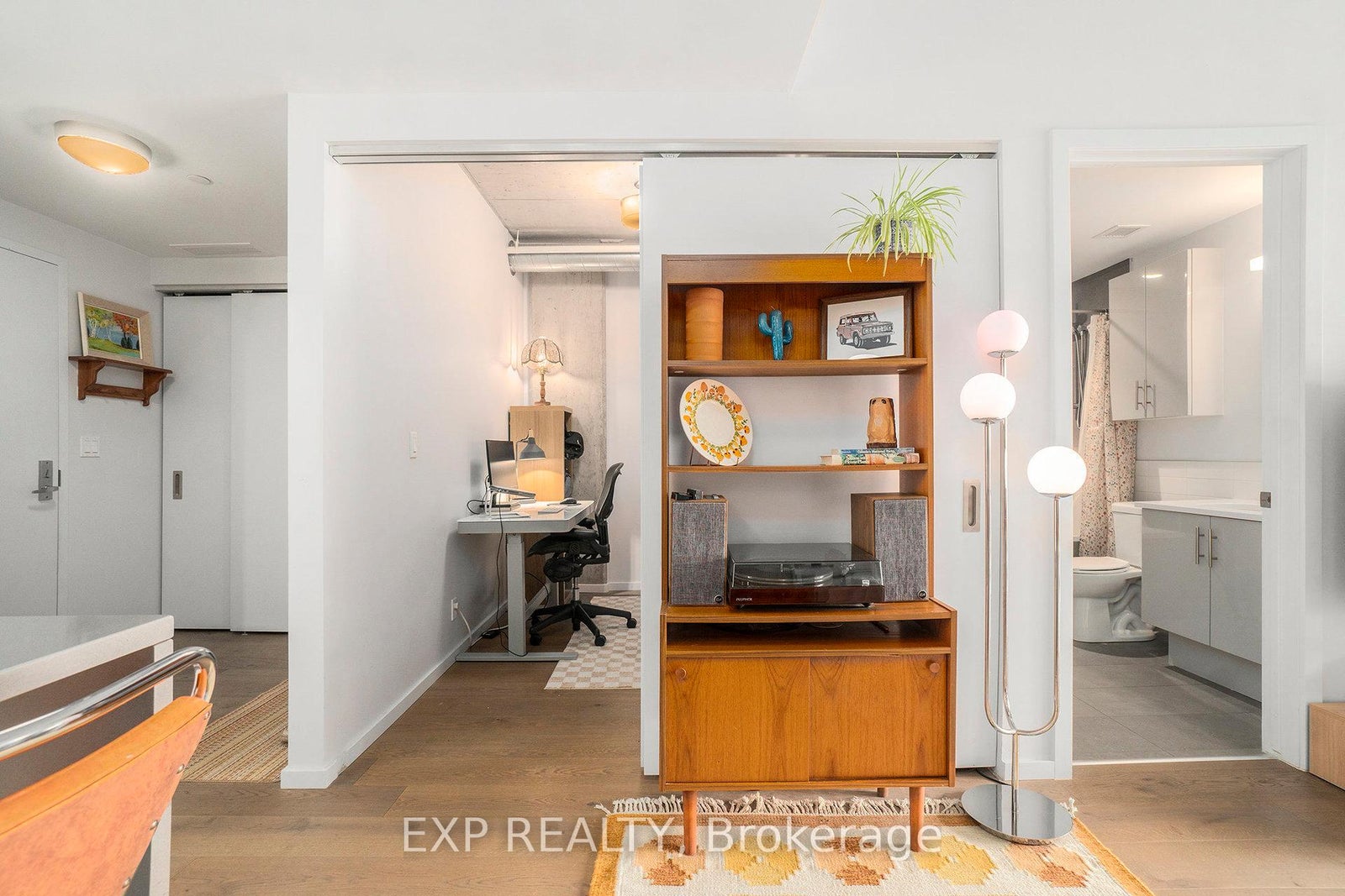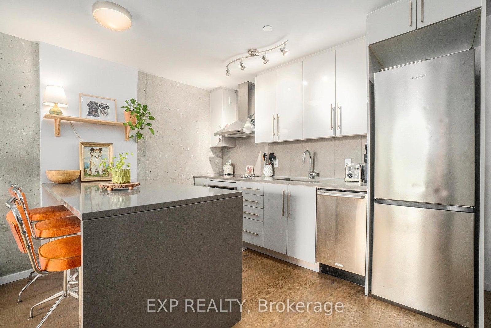 Discover the perfect blend of modern style and everyday functionality in this stunning 1-bedroom + den condo at The Eddy, a LEED Platinum-certified gem in vibrant Hintonburg. Boasting sleek design, premium upgrades, and a private balcony with captivating views of the neighbourhoods lively core, this home offers an unparalleled urban living experience. Inside, you'll find an open-concept kitchen and living area with quartz countertops, sleek cabinetry, and stainless-steel appliances. Soaring 9-foot exposed concrete ceilings, hardwood floors, and floor-to-ceiling windows bring in natural light, enhanced by professionally installed custom privacy shades and upgraded ceiling lighting throughout. The bedroom features a custom-built closet system with shelving and drawers, while the den provides flexibility for a home office, reading nook, or guest space. Additional upgrades include a Nest thermostat with smartphone control, extra electrical outlets, and designer lighting. This unit includes in-unit laundry, one underground parking spot, a storage locker, and even a private garden plot. Condo fees cover heating, cooling, and water offering convenience and peace of mind. Life at The Eddy also means access to a rooftop terrace with BBQs, lounge seating, and sweeping views of the Ottawa River and Gatineau Hills. Just steps from Bayview Station (LRT&buses), and surrounded by coffee shops, bakeries, restaurants, grocery stores, yoga studios, and boutique shops, you'll love everything Hintonburg living has to offer. Whether as your primary residence or a smart investment, this stylish and eco-friendly condo embodies the best of connected, urban living.